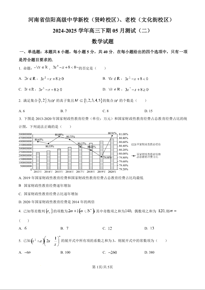 河南省信阳高级中学2025届高三下学期5月测试(二)数学(原卷版)