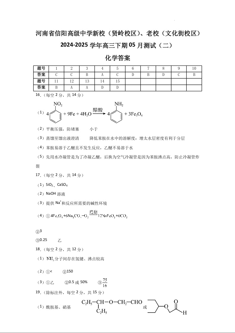 河南省信阳高级中学2025届高三下学期5月测试(二)化学答案