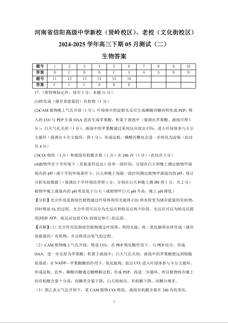 河南省信阳高级中学2025届高三下学期5月测试(二)生物答案