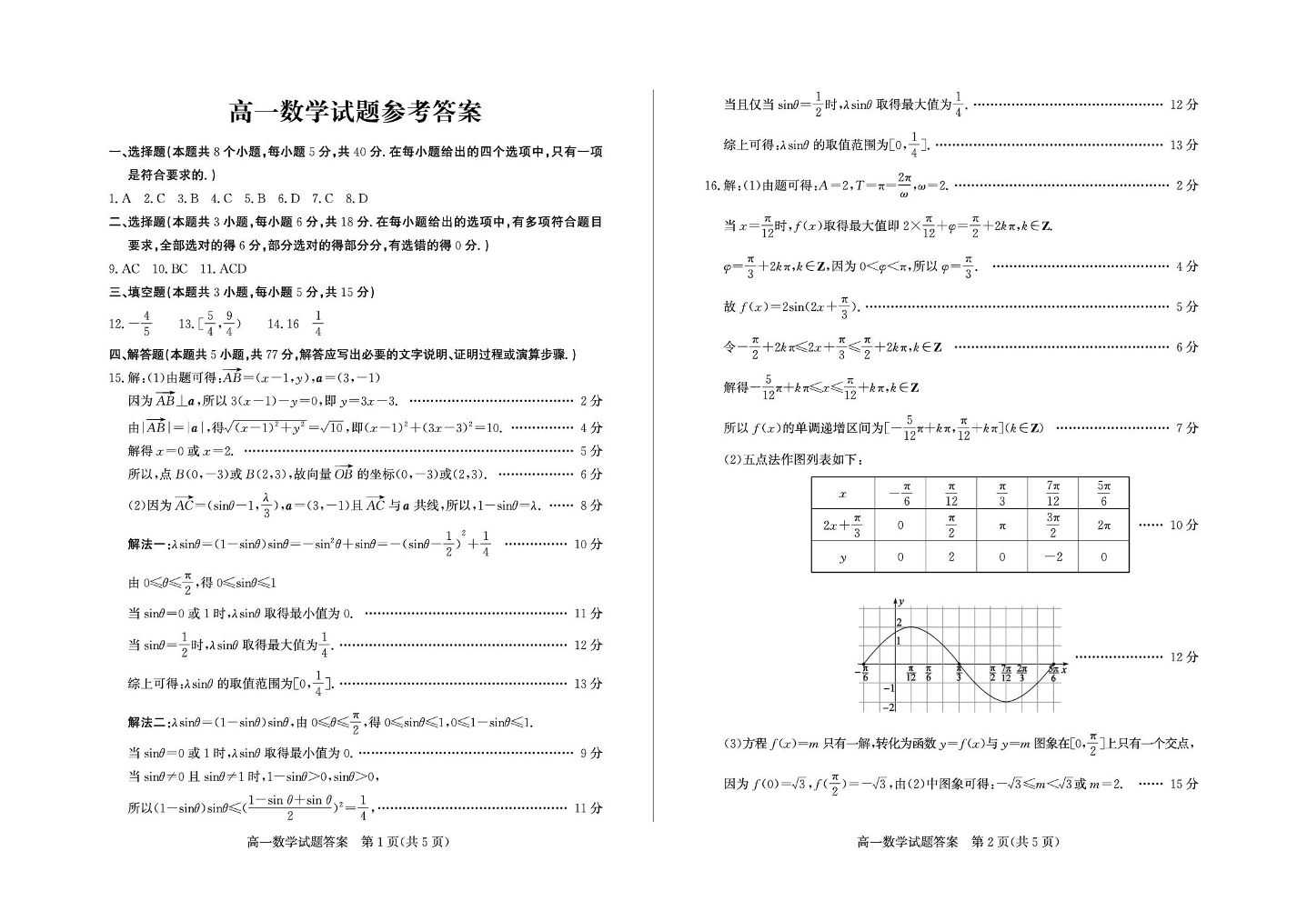 山东省德州市2024-2025学年下学期高一期中考试数学答案