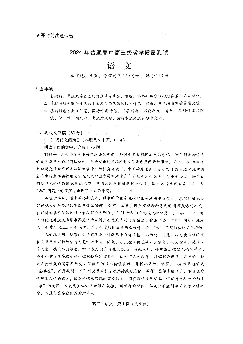 广东省揭阳市汕尾市2024届高三上学期1月期末考试语文