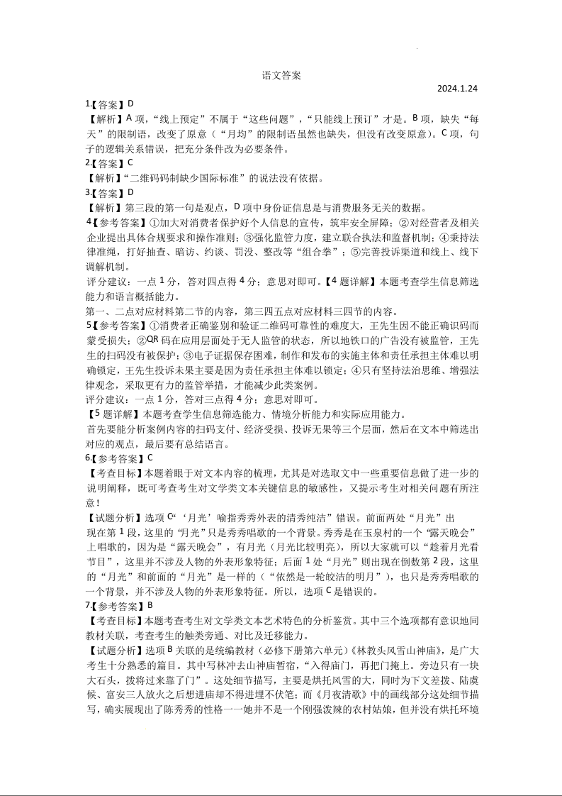 广东省茂名市2024届高三年级第一次综合测试(茂名一模)语文答案