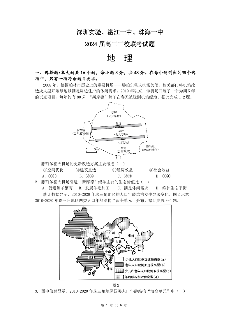 广东省深圳实验,湛江一中,珠海一中2024届高三上学期12月联考地理
