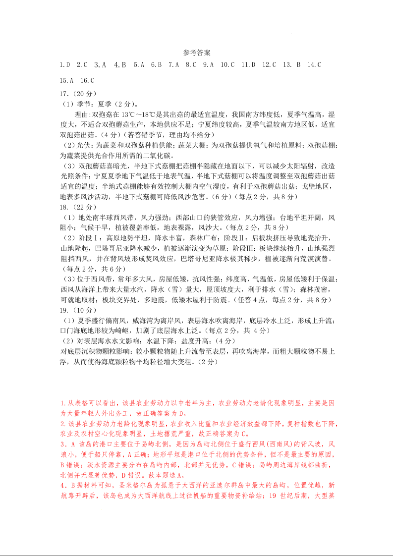 广东省深圳市罗湖区2024届高三上学期期末质量监测地理答案
