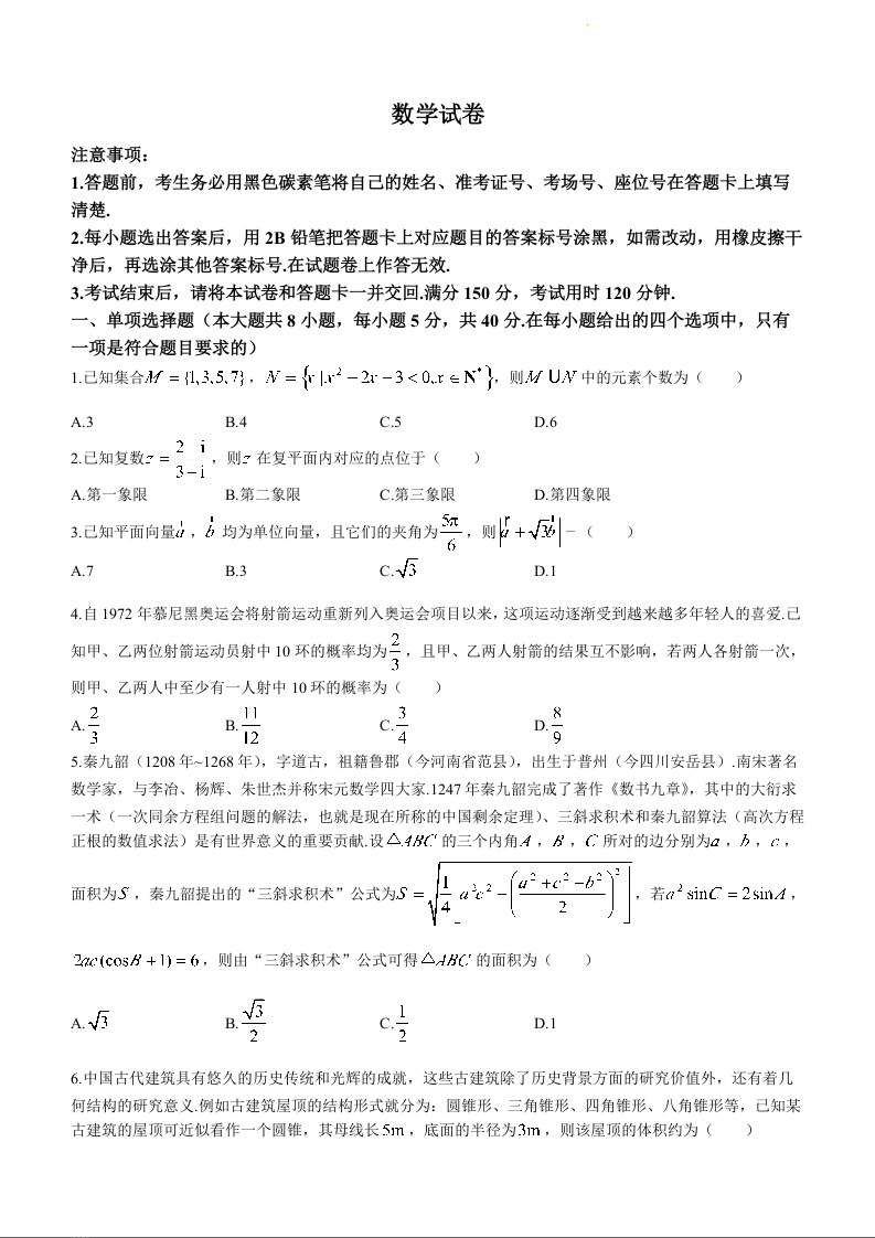 贵州省贵阳市第一中学2024届高三上学期适应性月考(五)数学+答案