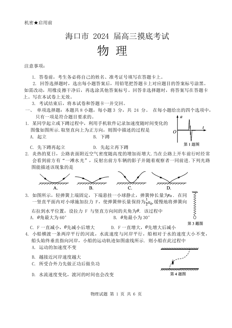 海南省海口市2024届高三上学期1月摸底考试(海口一模)物理