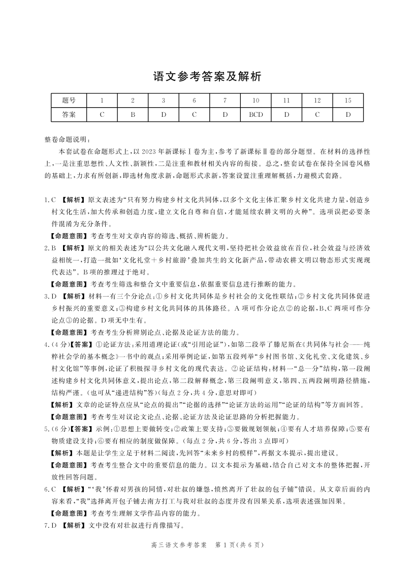 河北省2024届高三大数据应用调研联合测评(Ⅳ)语文答案