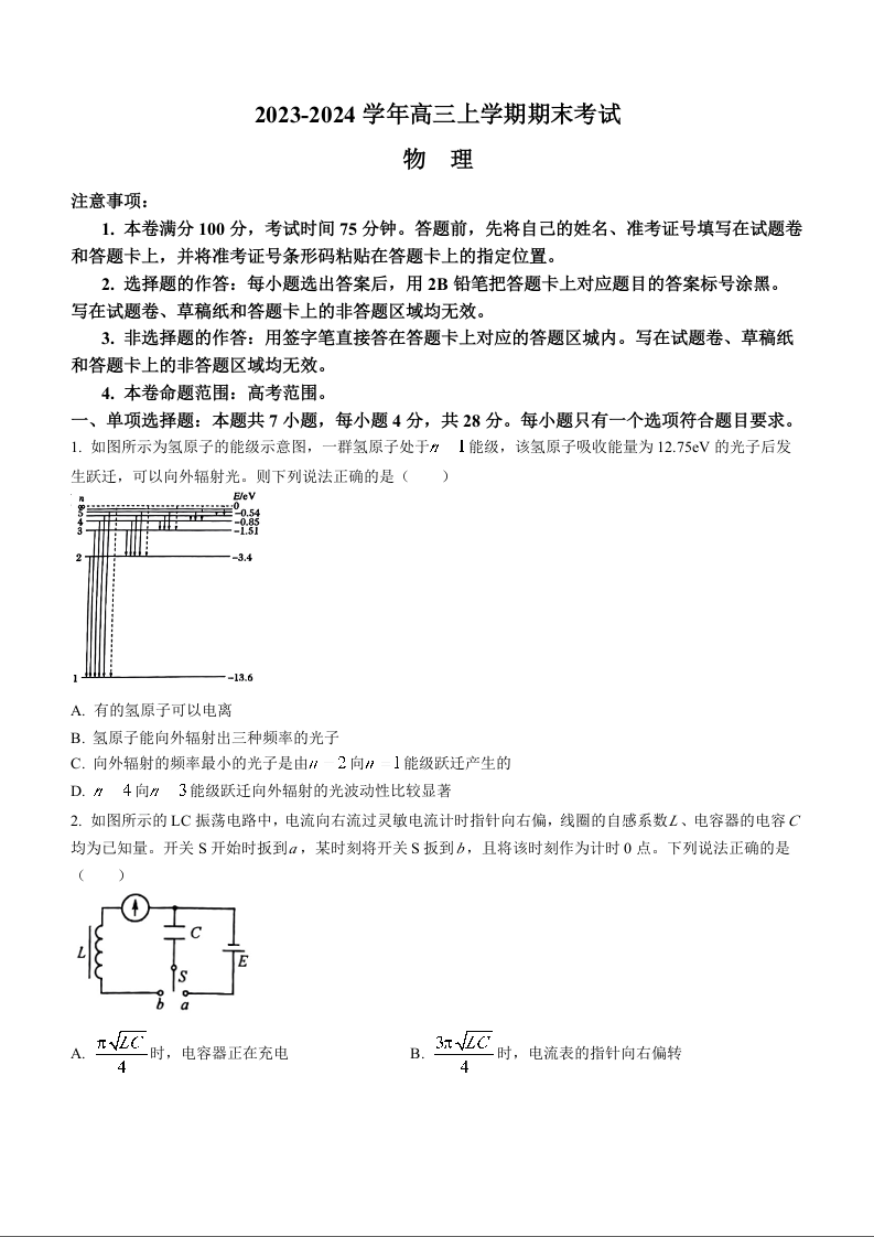 河北省2024届高三大数据应用调研联合测评(Ⅳ)物理+答案