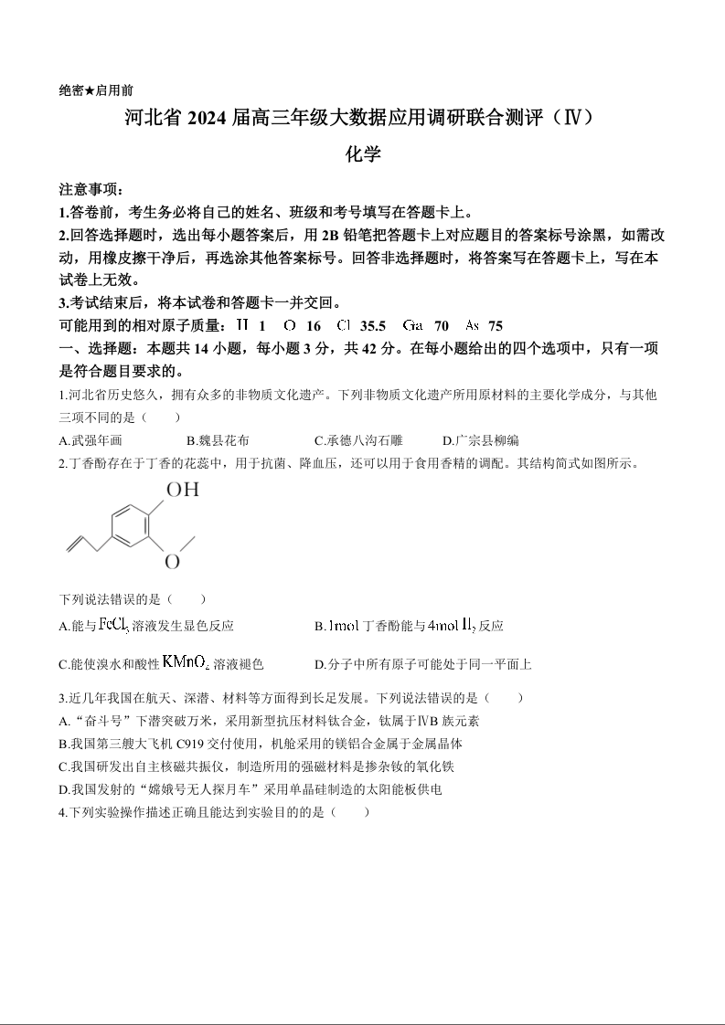 2024届河北省高三大数据应用调研联合测评(Ⅳ)化学+答案