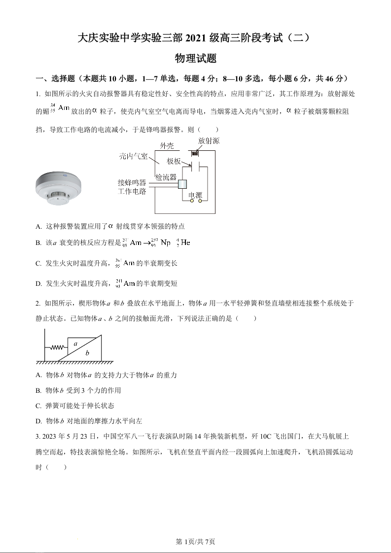 黑龙江省大庆市实验中学实验三部2024届高三上学期阶段考试(二)物理(原卷版)