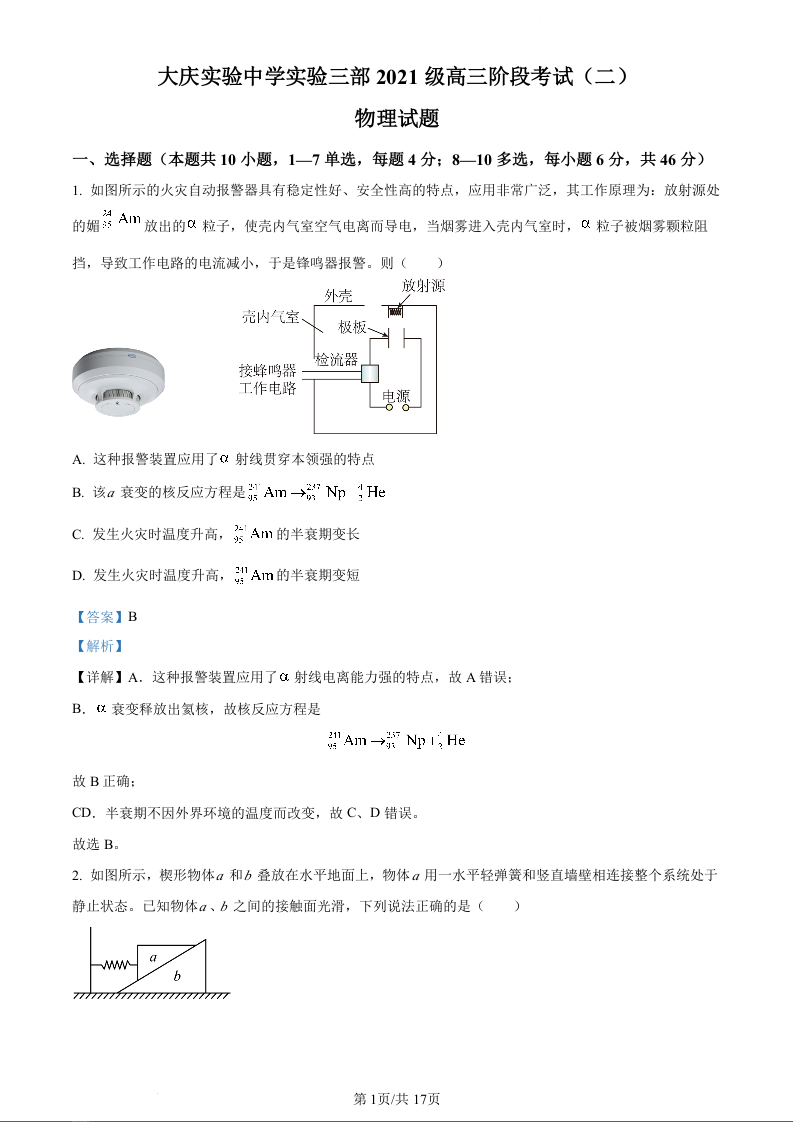 黑龙江省大庆市实验中学实验三部2024届高三上学期阶段考试(二)物理(精品解析版)