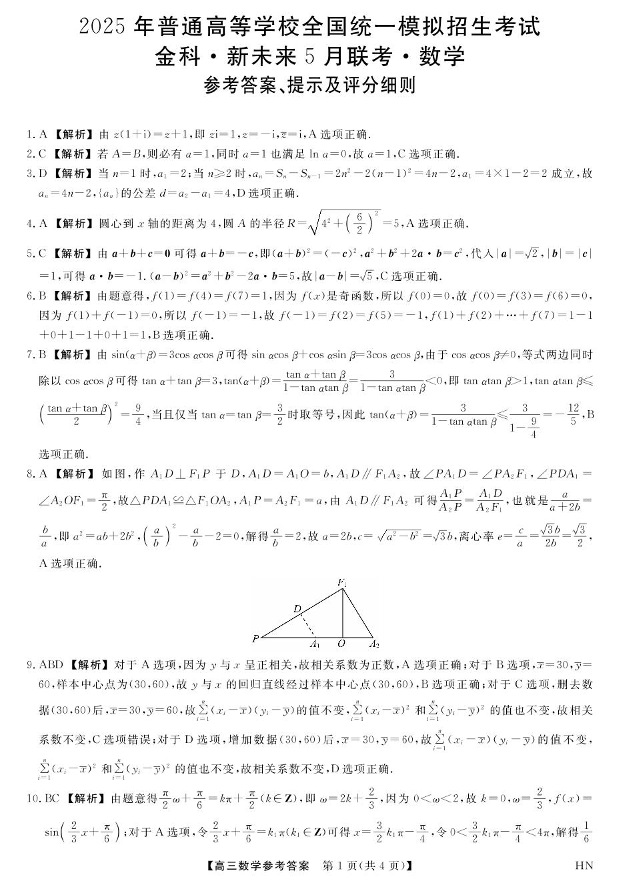 河南省金科新未来2025届高三下学期5月联考数学答案