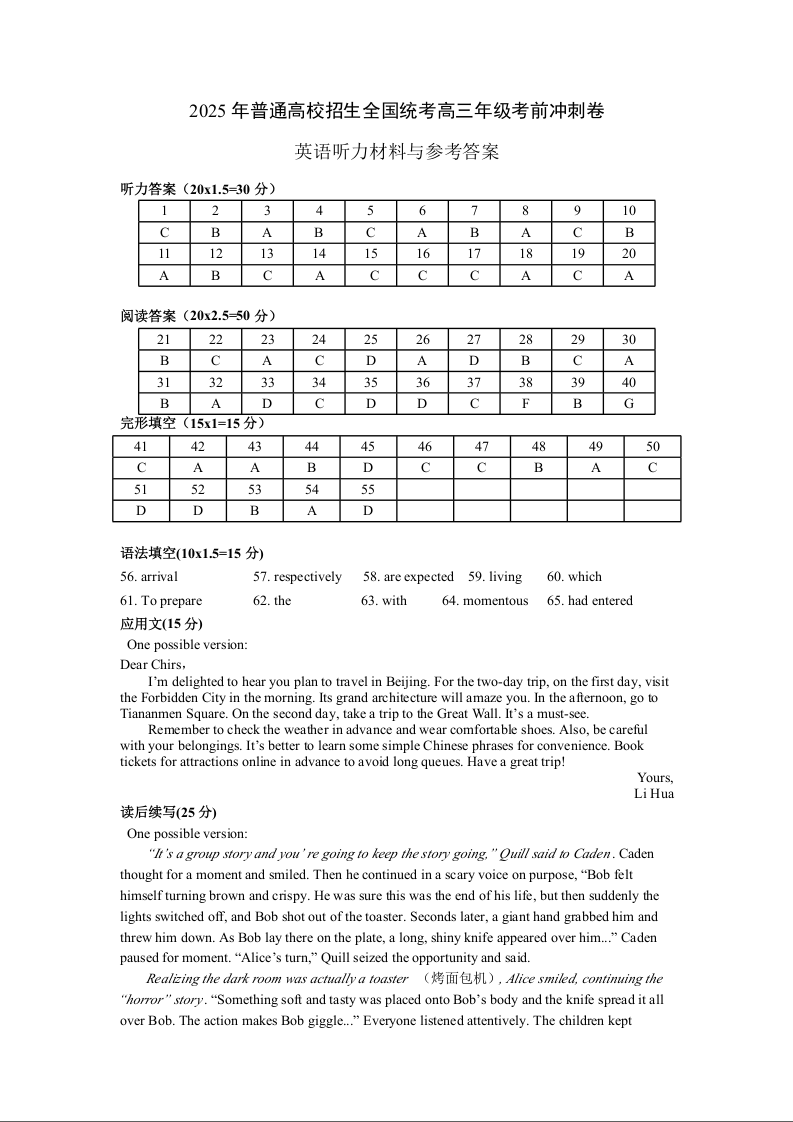湖南省长沙市雅礼中学2025届高三下学期冲刺模拟训练英语答案