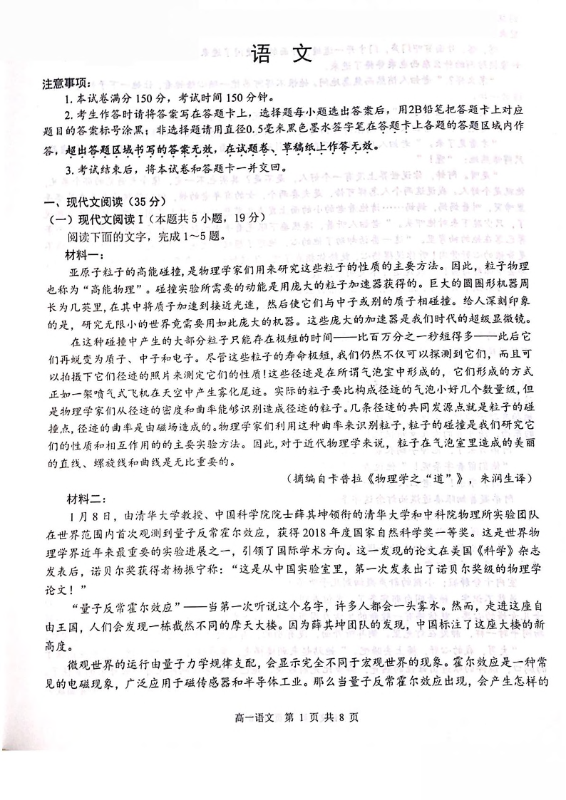 广西壮族自治区“贵百河”联考2024-2025学年下学期5月高一月考语文+答案