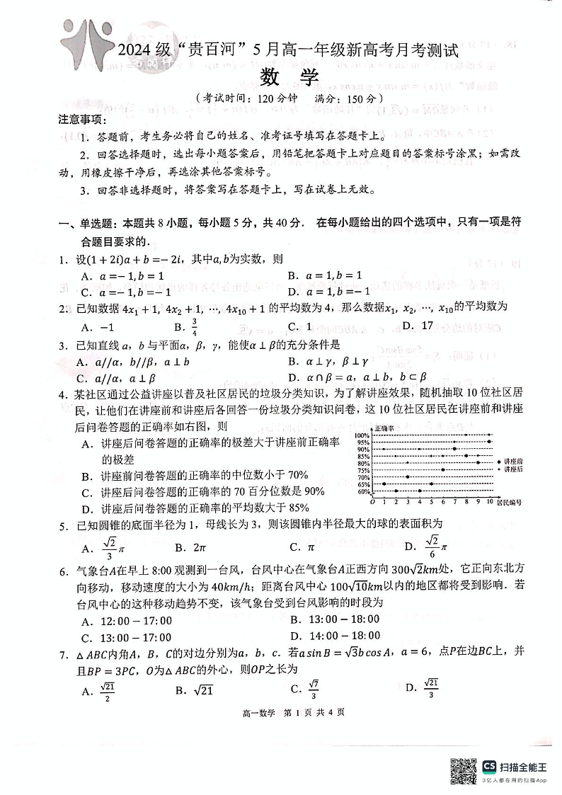 广西壮族自治区“贵百河”联考2024-2025学年下学期5月高一月考数学