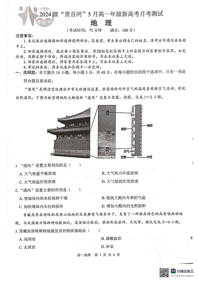 广西壮族自治区“贵百河”联考2024-2025学年下学期5月高一月考地理