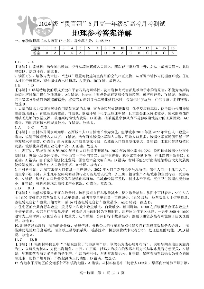 广西壮族自治区“贵百河”联考2024-2025学年下学期5月高一月考地理答案