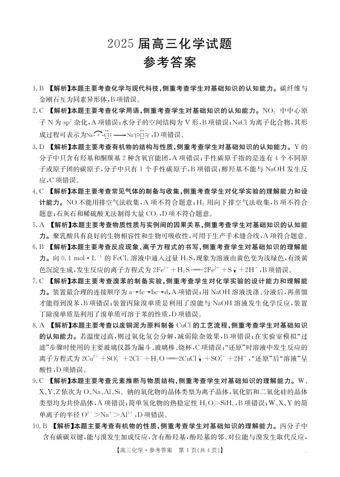 四川省区域高中2024-2025学年5月高三联考化学答案
