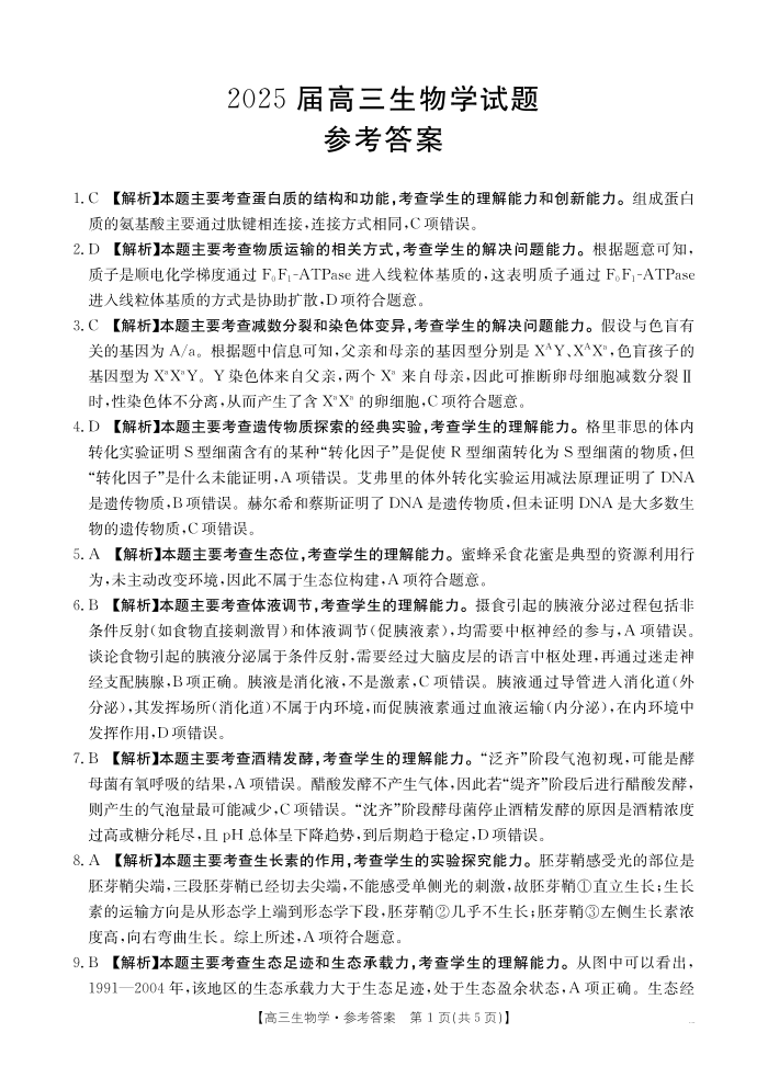 四川省区域高中2024-2025学年5月高三联考生物答案