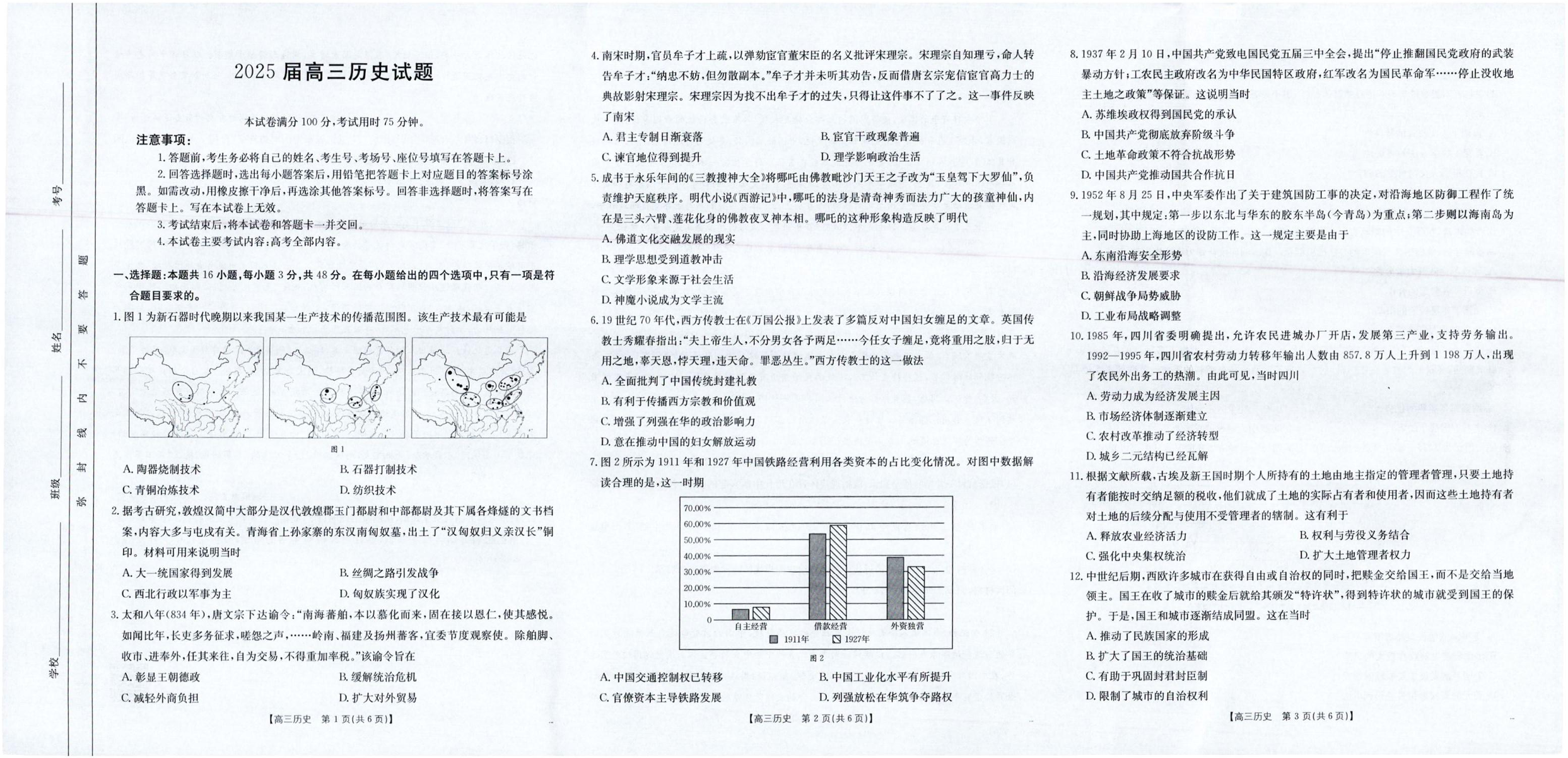 四川省区域高中2024-2025学年5月高三联考历史