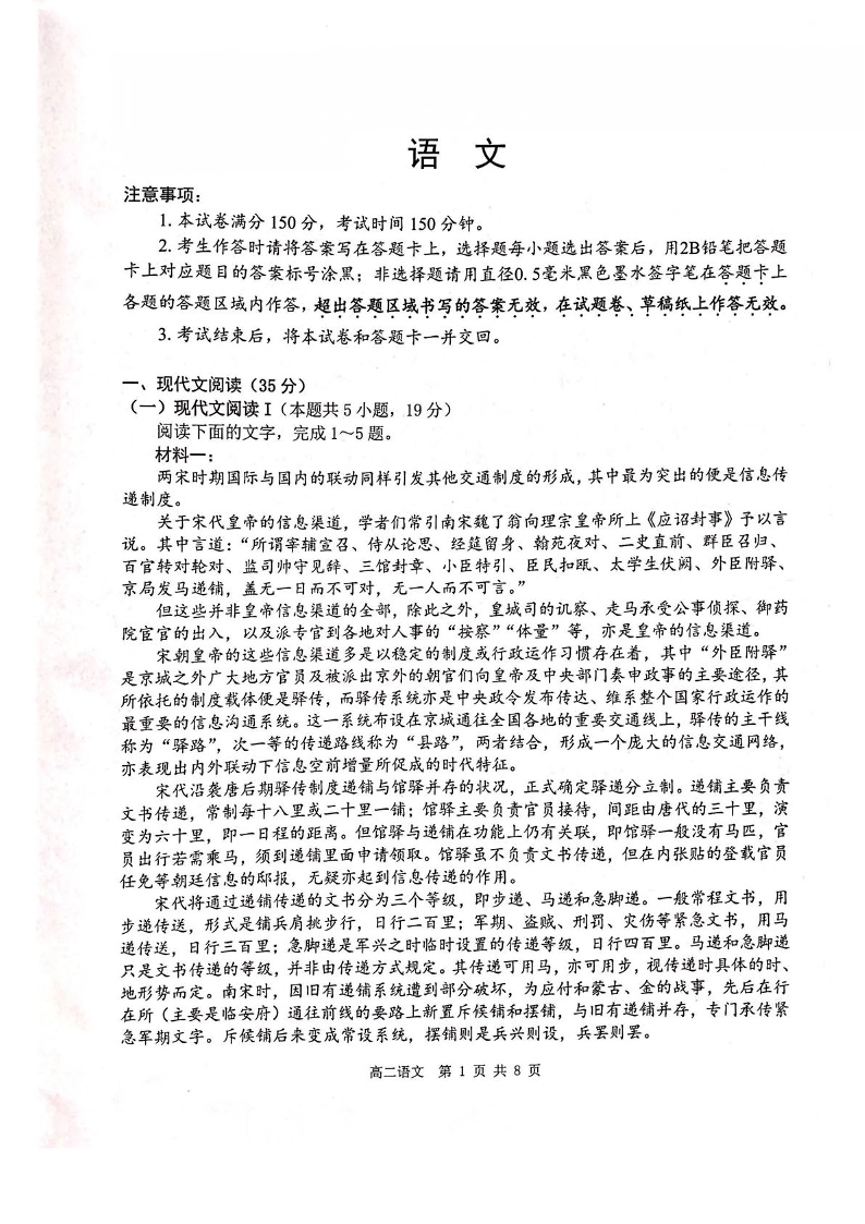 广西壮族自治区“贵百河”联考2024-2025学年下学期5月高二月考语文+答案