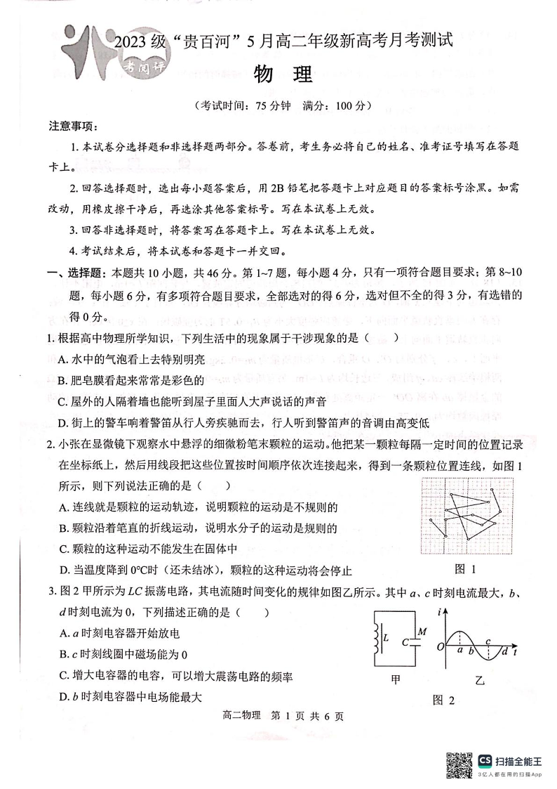 广西壮族自治区“贵百河”联考2024-2025学年下学期5月高二月考物理