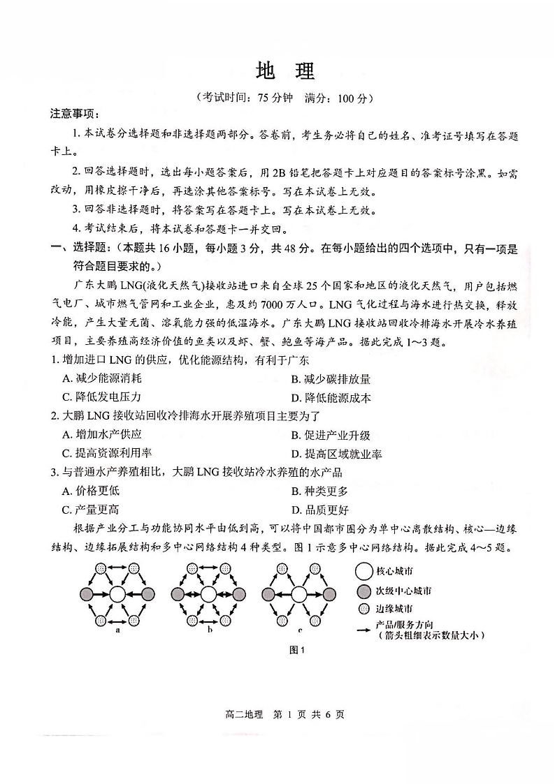 广西壮族自治区“贵百河”联考2024-2025学年下学期5月高二月考地理+答案