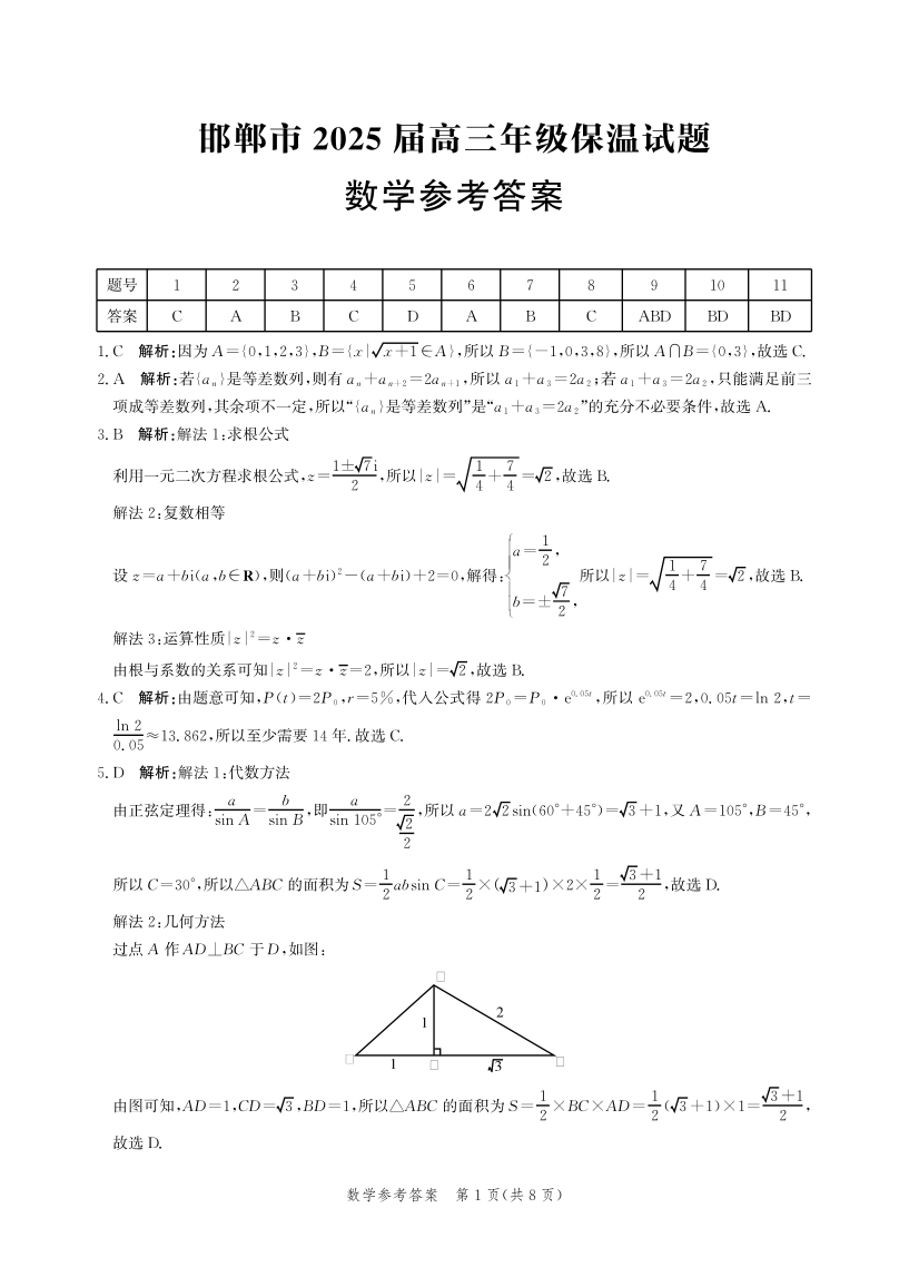 河北省邯郸市2025届下学期5月高三保温考试数学答案