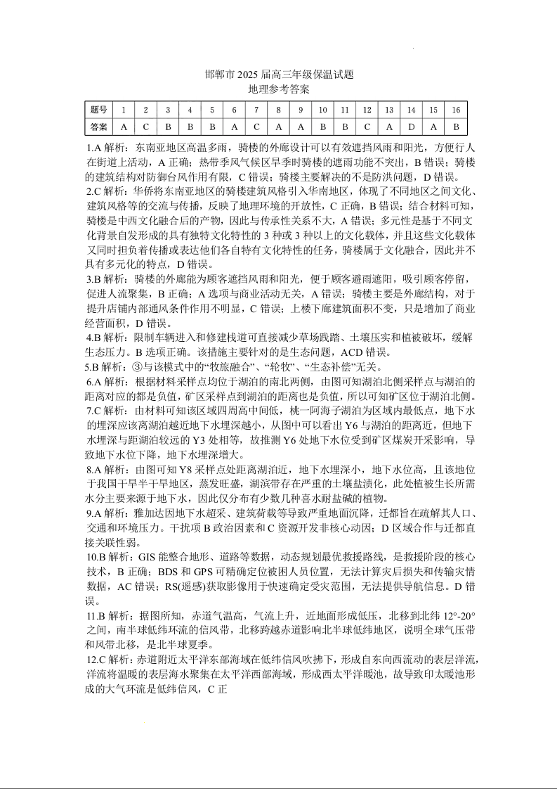 河北省邯郸市2025届下学期5月高三保温考试地理答案