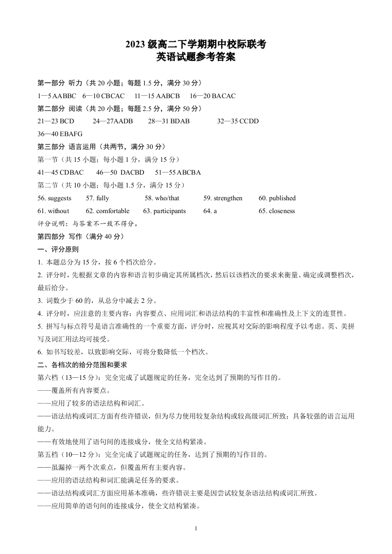 山东省日照市2024-2025学年下学期高二期中校际联合考试英语答案
