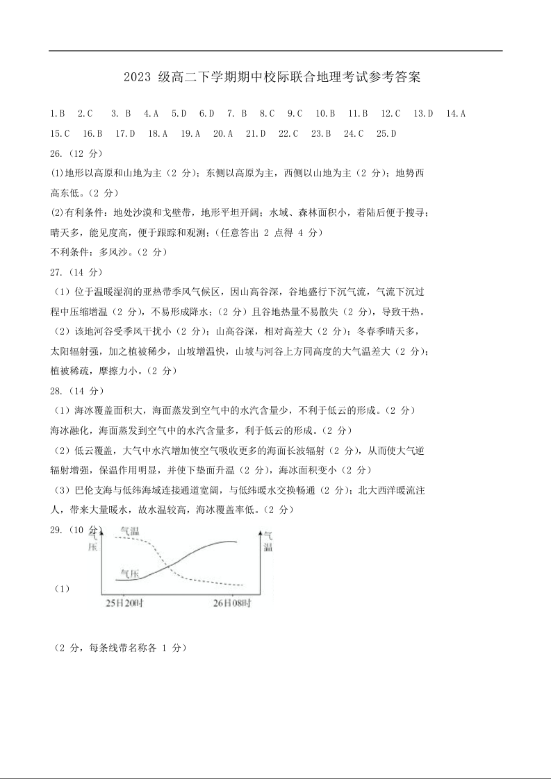 山东省日照市2024-2025学年下学期高二期中校际联合考试地理答案