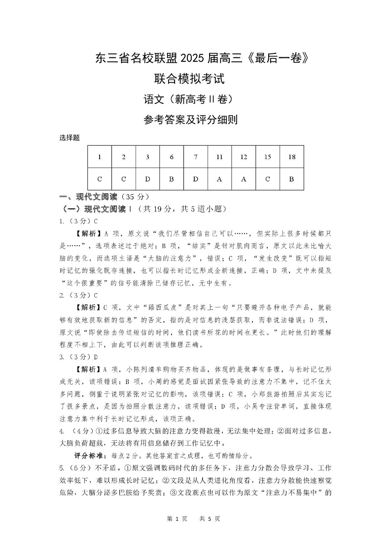 东三省名校联盟2025届高三下学期最后一卷联合模拟考试语文答案