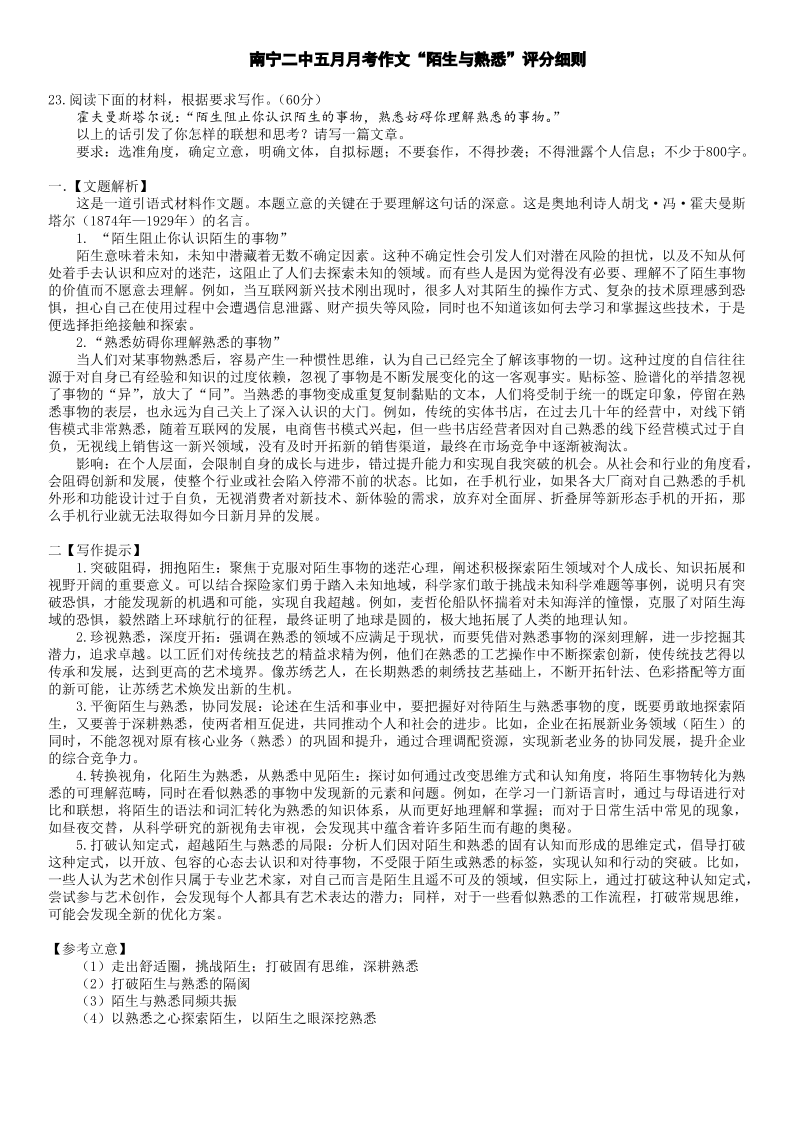 广西壮族自治区南宁二中2025年5月高三冲刺考试评分细则与标杆卷