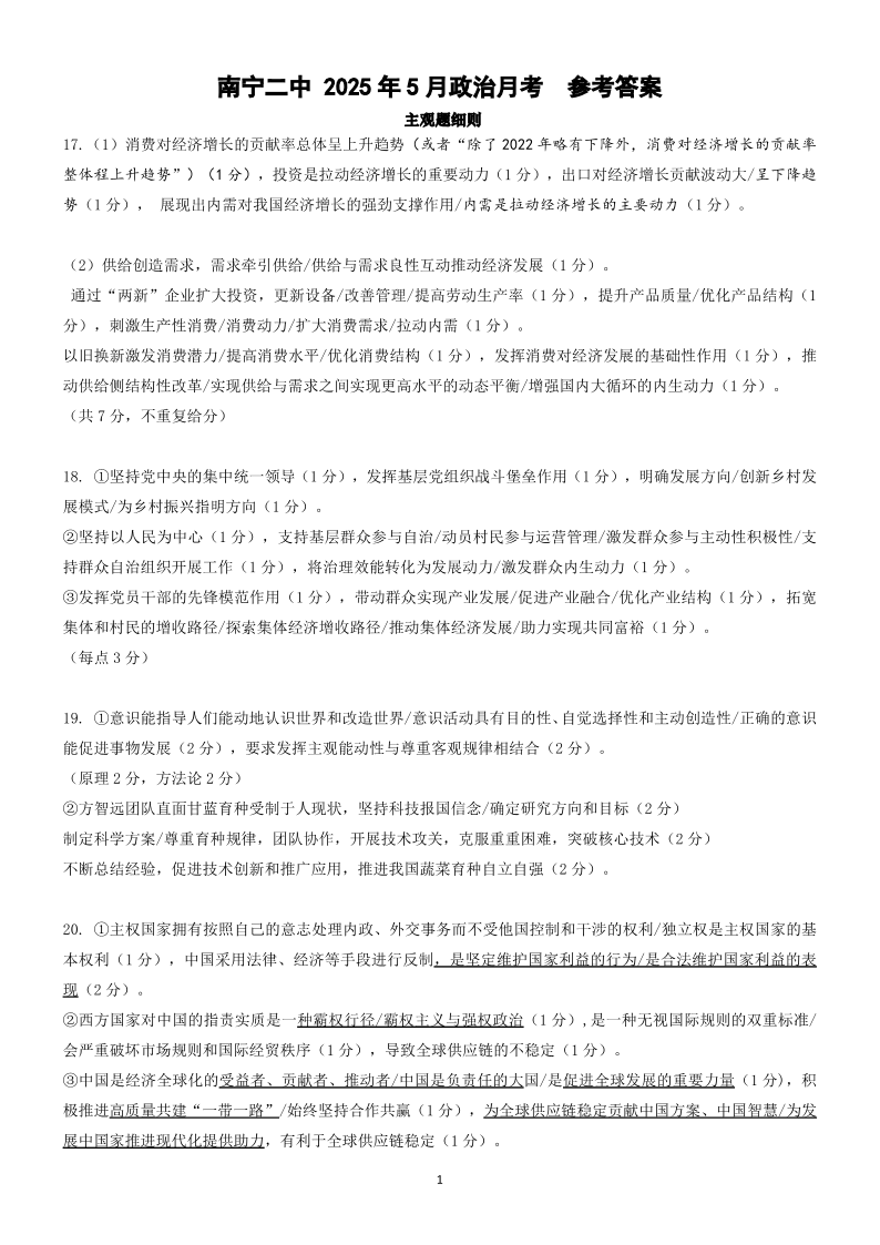 广西壮族自治区南宁二中2025年5月高三冲刺考试评分细则