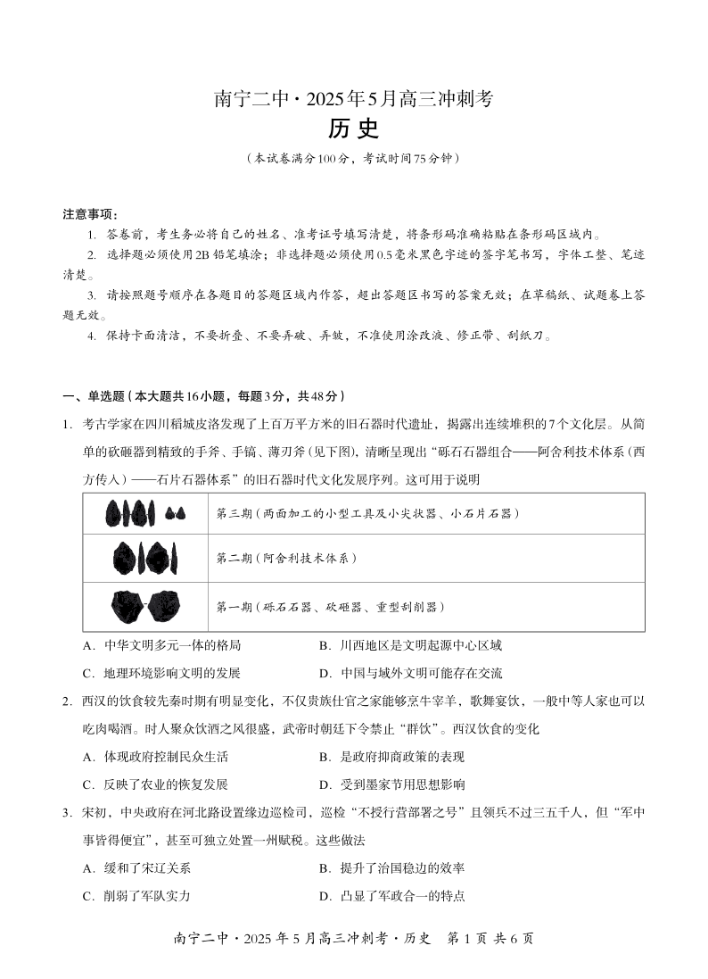 广西壮族自治区南宁二中2025年5月高三冲刺考试历史