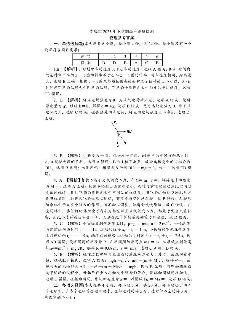 湖南省娄底市2024届高三上学期期末考试物理答案