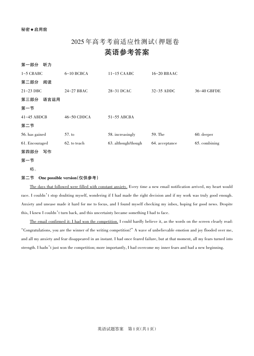 山西省区域高中2025届高三考前三模测试英语答案与详解