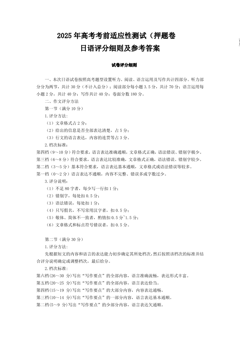 山西省区域高中2025届高三考前三模测试日语听力原文及参考答案