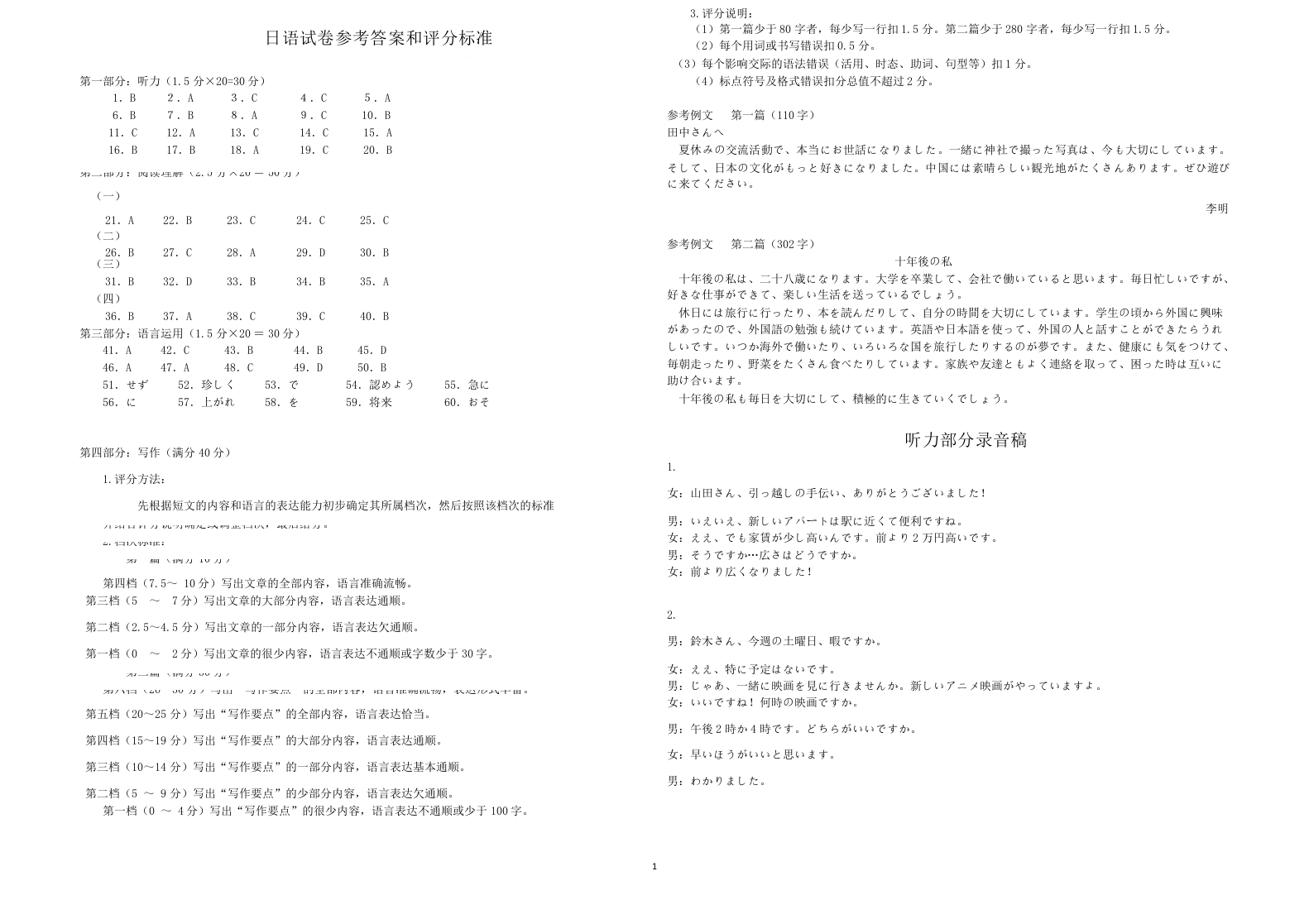 湖北省十堰市2025届下学期五月高三适应性考试日语答案