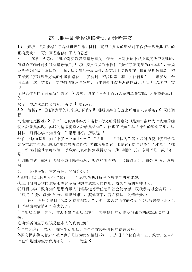 福建省漳州市十校联盟2024-2025学年下学期高二期中考试语文答案