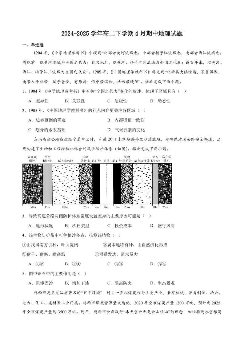 福建省漳州市十校联盟2024-2025学年下学期高二期中考试地理+答案