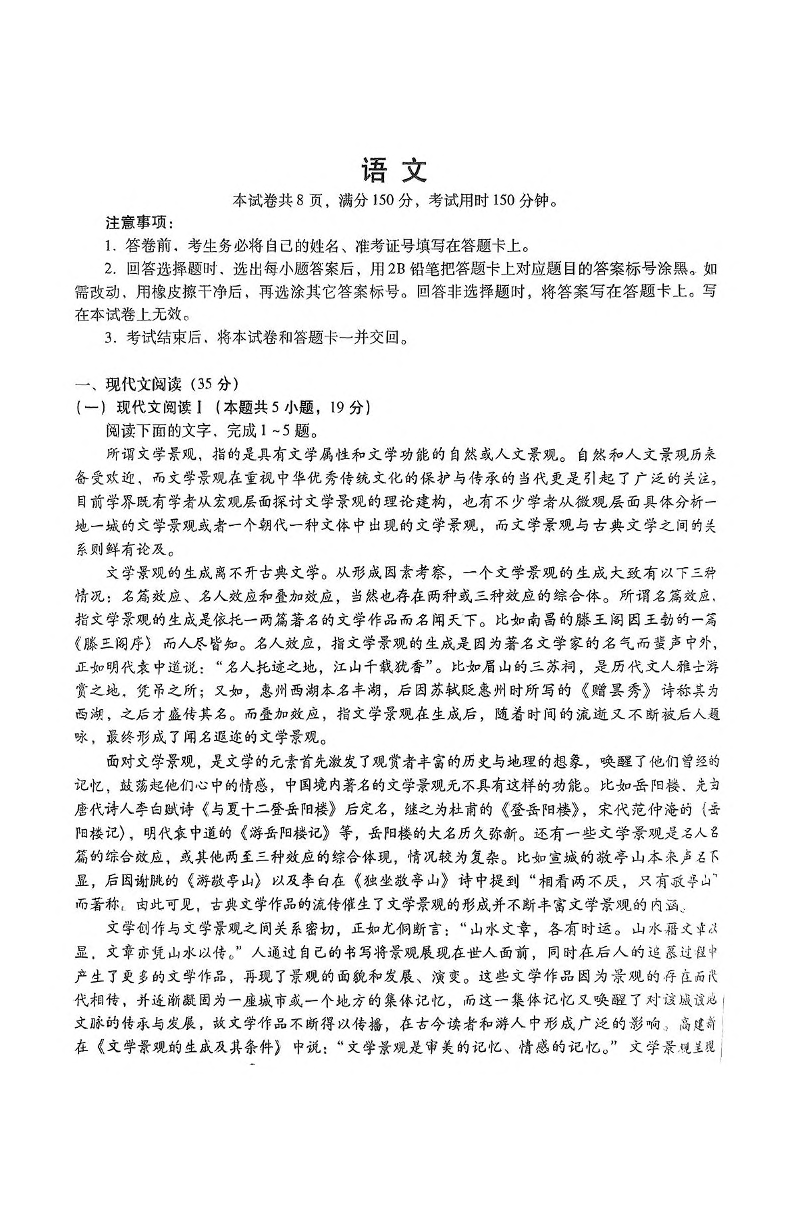 河北省名校联考2024-2025学年下学期高二期中考试语文+答案