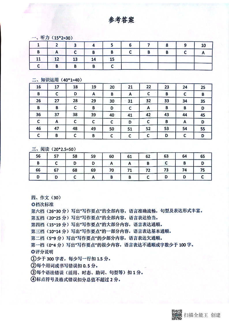 江苏省南通市2024届高三第一次调研测试(南通一模)日语答案
