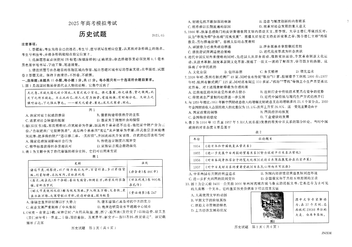 山东省济宁市2024-2025学年下学期5月高三三模历史