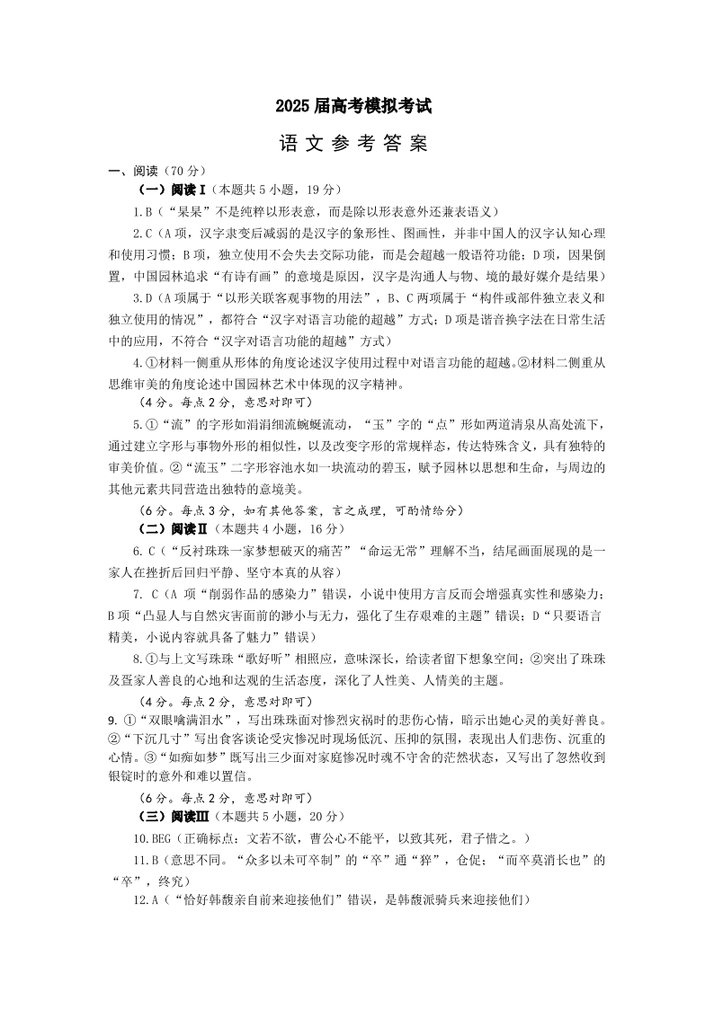山东省济宁市2024-2025学年下学期5月高三三模语文答案