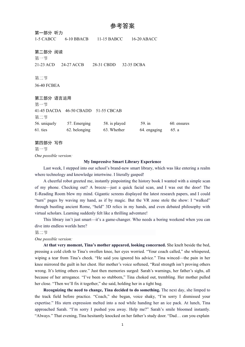 山东省济宁市2024-2025学年下学期5月高三三模英语答案