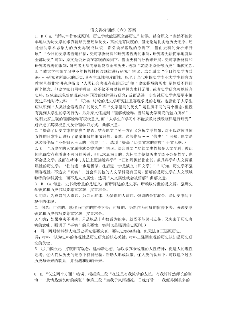 黑龙江省大庆实验中学2025届高三下学期得分训练(六)语文答案
