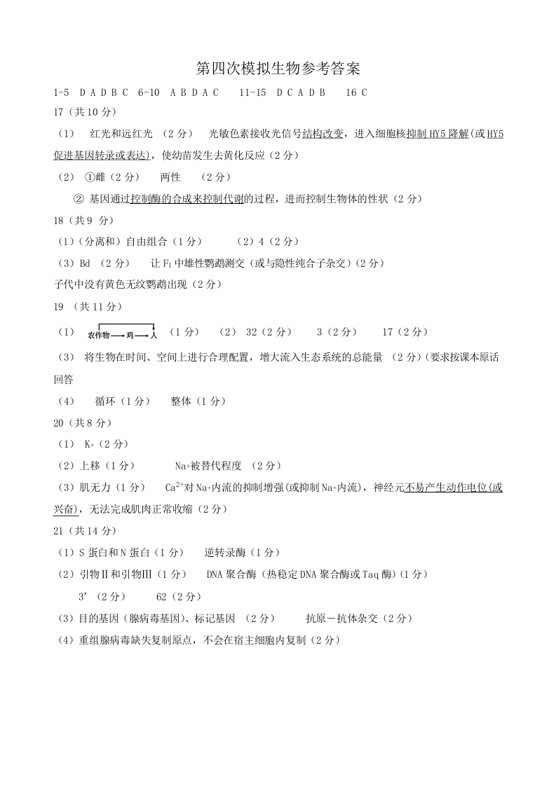河南省实验中学2025届高三下学期第四次模拟考试生物答案