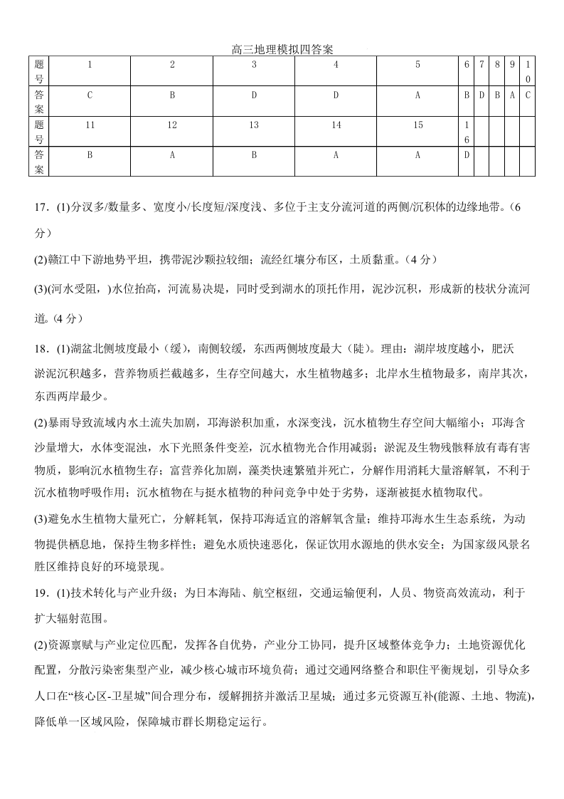 河南省实验中学2025届高三下学期第四次模拟考试地理答案