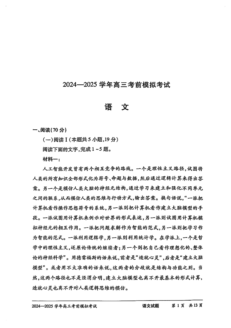 河南省天一大联考2025届高三考前模拟预测语文